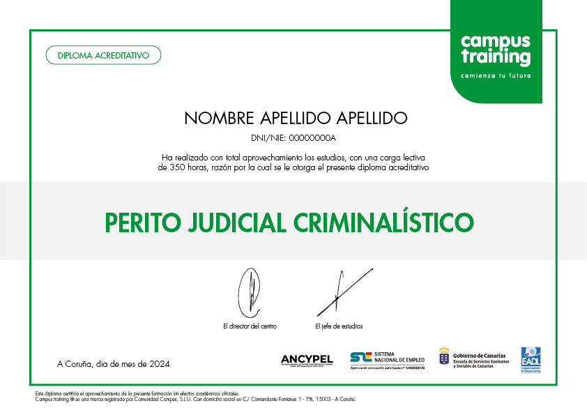 El título propio de Campus Training de Perito Judicial Criminalístico te abrirá la puerta a nuevas oportunidades laborales.