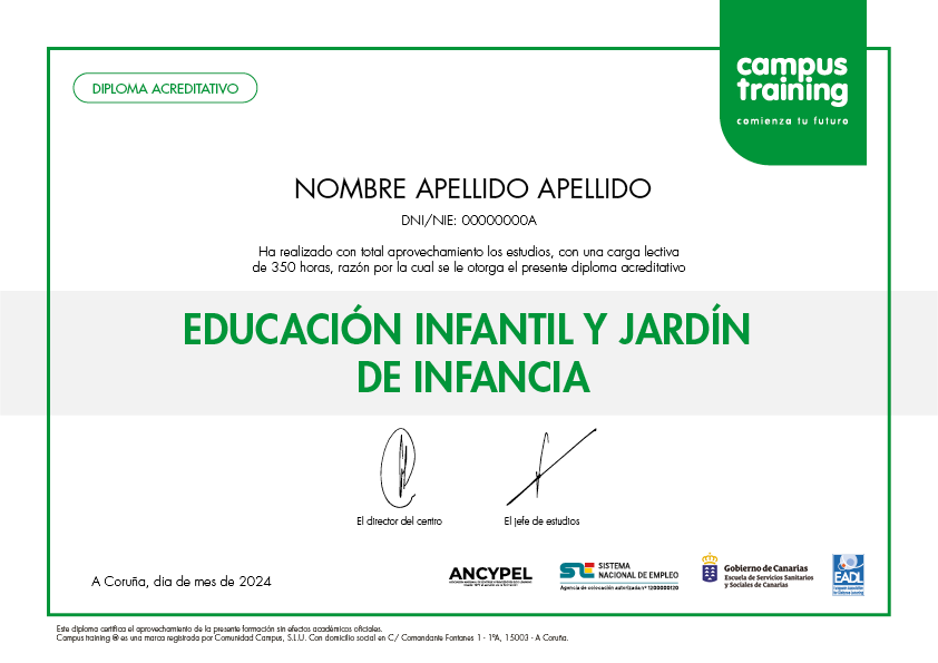 Con el título propio de Campus Training en el Curso de Educación Infantil y Jardín de Infancia podrás empezar tu camino en la enseñanza y poner en práctica todo lo aprendido.