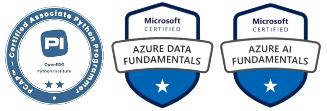Obtén la certificación PCAP con nuestro curso oficial de Python Institute: Python Essentials; y las certificaciones Microsoft DP900 y AI9001 con nuestro curso de Azure Fundamentals.